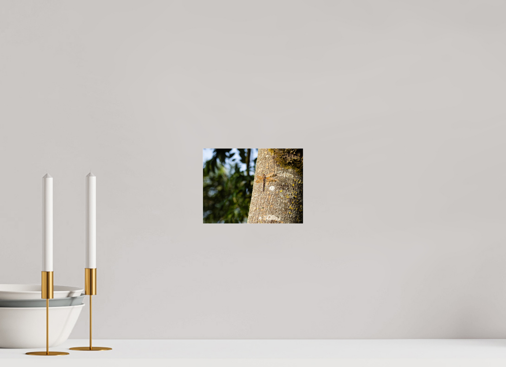 Dragonfly in early Morning Sunlight on tree Trunk by Pauric Brennan