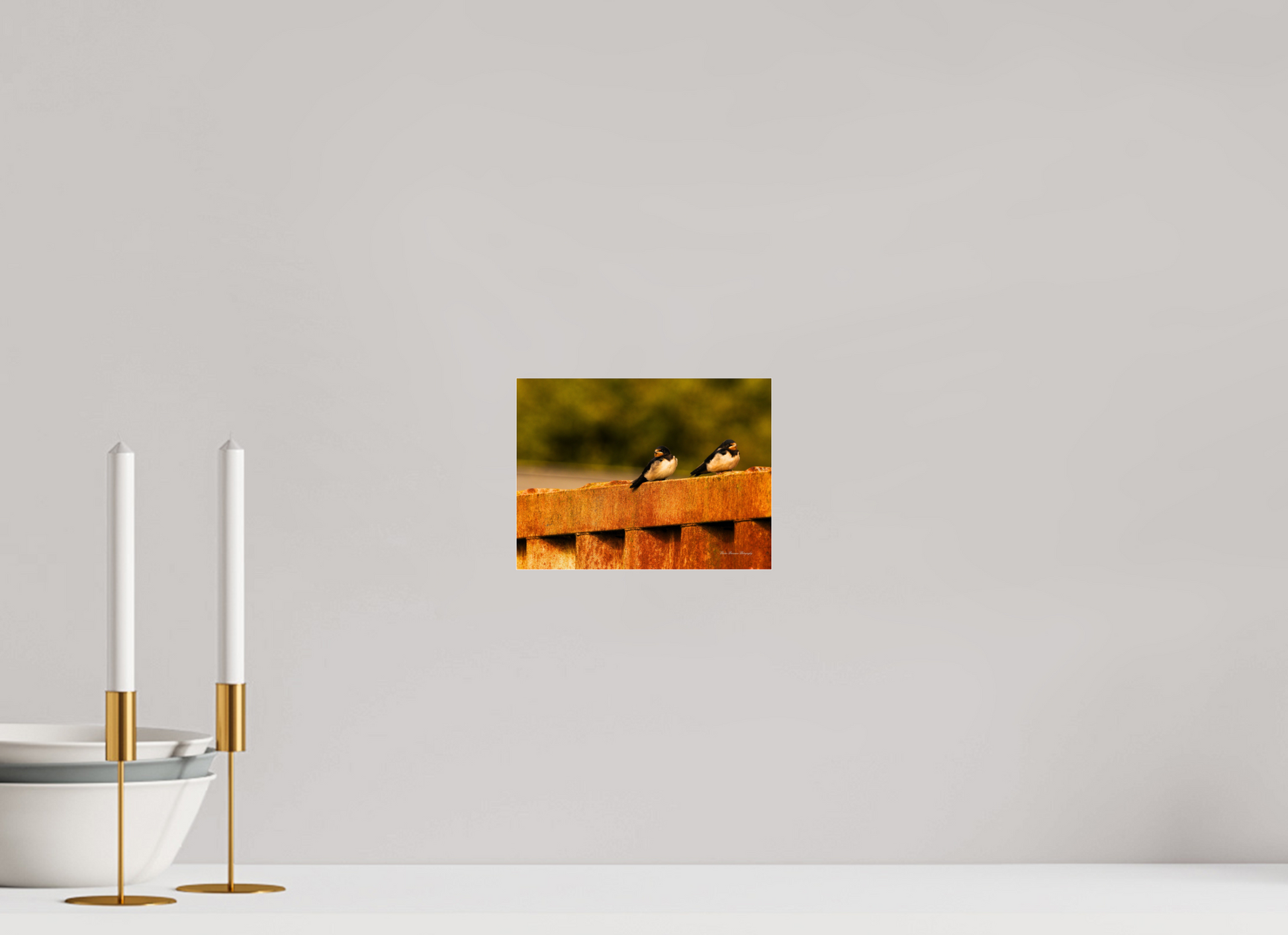 Swallows at Rest – Golden Hour Perch Metallic Photo Print under Acrylic Glass
